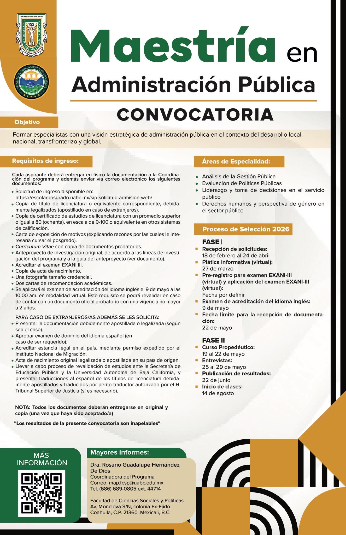 - Acreditar el curso propedéutico en materiales básicas de teoría de la Administración Pública, políticas públicas, Estado y sociedad.